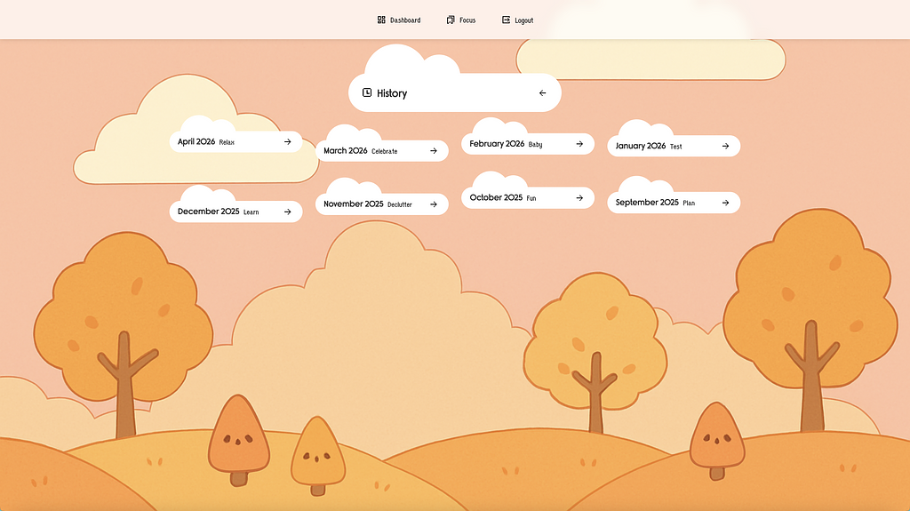 A cozy, seasonal planning app that helps you choose one theme each month, organize tasks around it, and stay focused with a simple daily view.